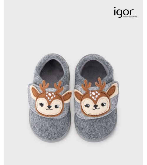 Zapatillas de casa de Igor fabricadas en textil color gris con elemento decorativo en forma de reno. Zapatillas de concepto "Barefoot" con cierre...