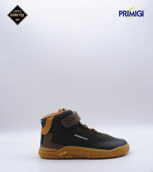 Botín barefoot de la marca italiana Primigi confeccionadas con tecnología GORE TEX en color marrón y verde kaki y suela con tecnología Vibram. Un...