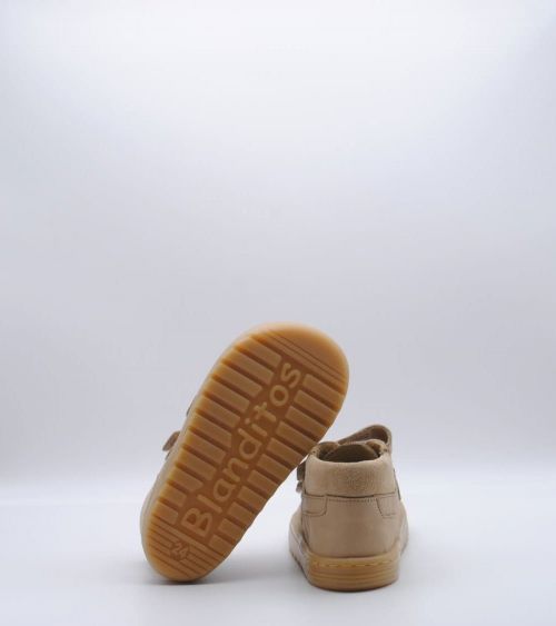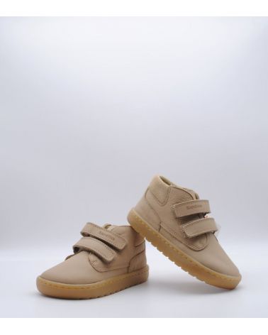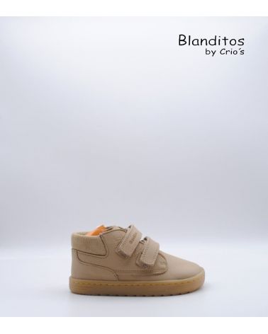 Botín respetuoso de la marca Blanditos by Crio's modelo Lima fabricada en piel arena con trasera acolchada. Sistema de regulación con doble velcro. ¡Unas botitas que aportan comodidad para el invierno!