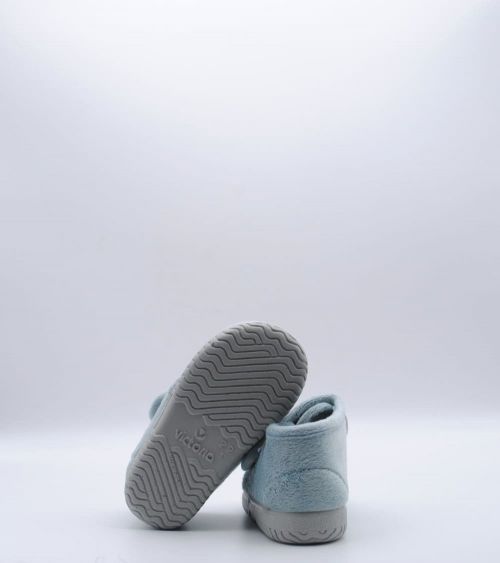 Zapatillas de casa de VICTORIA para niña y niño en color azul cielo con forma de animal tipo rinoceronte. Con cierre velcro por lo que son muy fáciles de poner y sacar. Fabricadas en España en pelito corto y muy agradable. ¡Las zapatillas de casa más molonas!