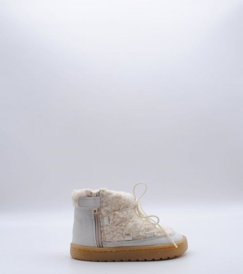 Botín respetuoso de la marca Blanditos by Crio's modelo Nieve fabricado en piel porcelana con forro polar. Sistema de regulación con cordones. ¡Unas botitas que aportan comodidad para el invierno!