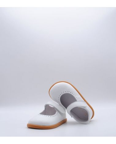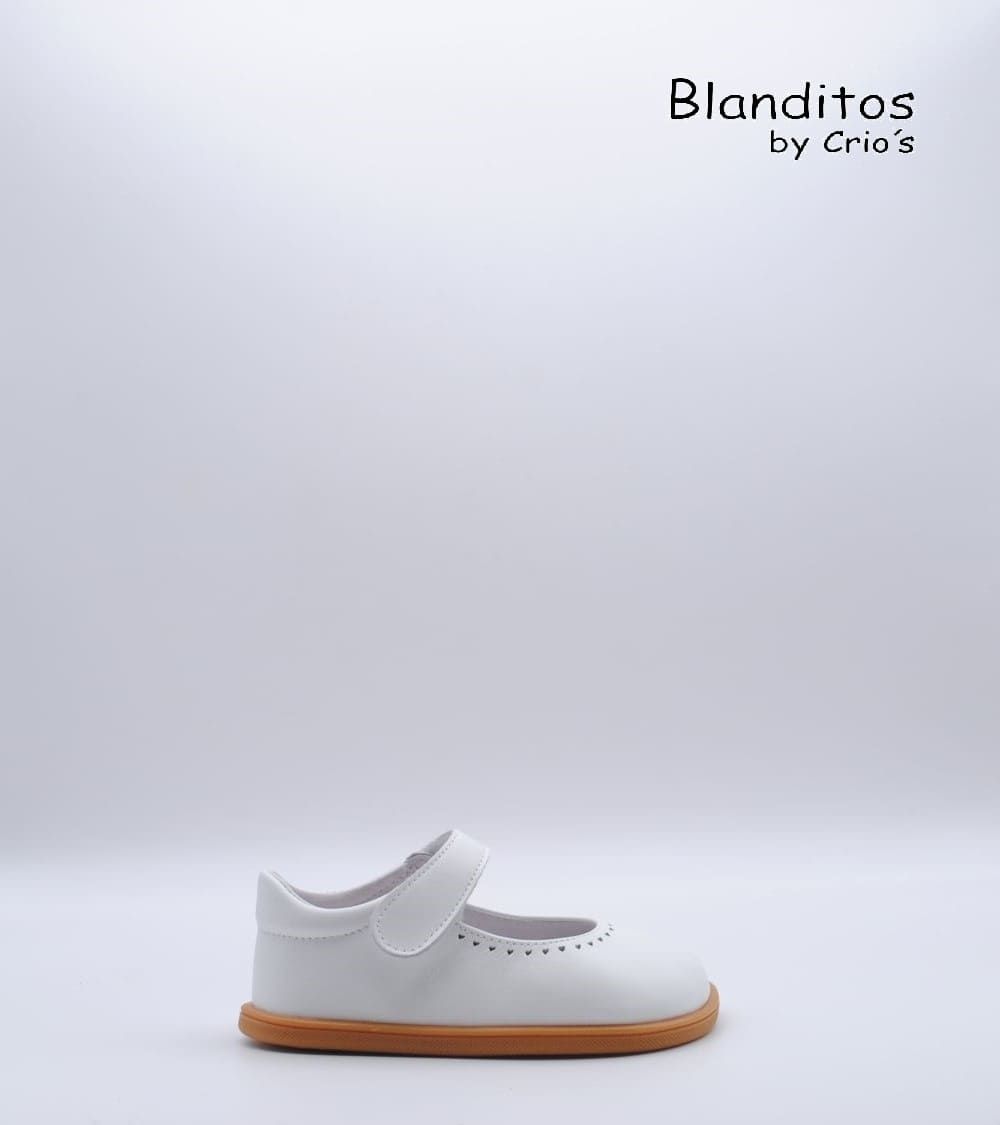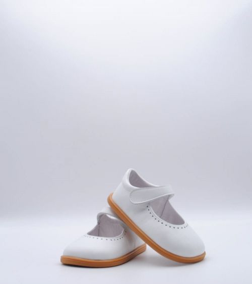 Zapato de vestir de la marca Blanditos by Crio's modelo Delhi fabricado en piel color blanco. Sistema de regulación con velcro único.