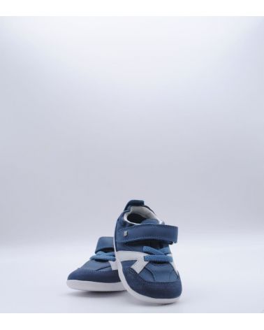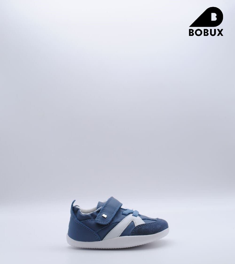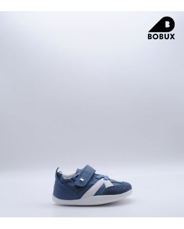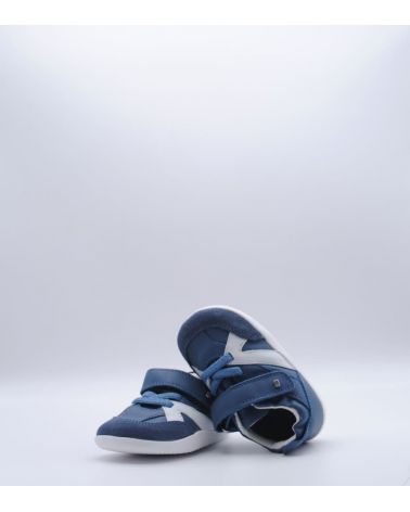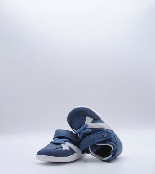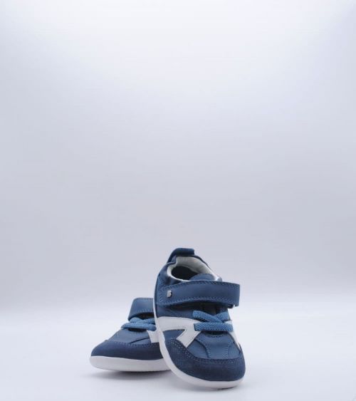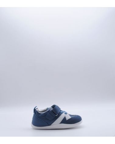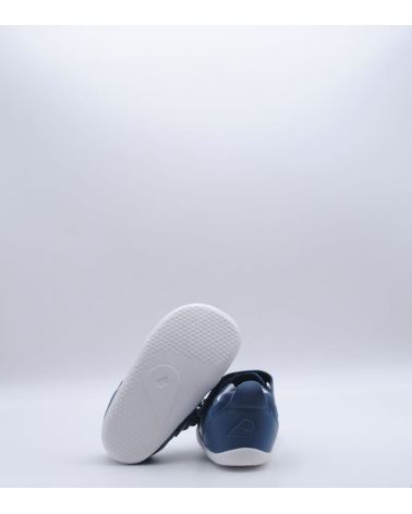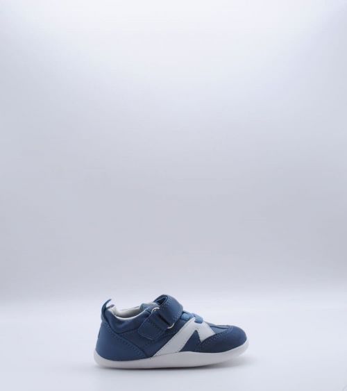 Calzado respetuoso bebé BOBUX modelo Chase en color azul marino con detalle lateral en blanco es un calzado respetuoso para bebés, vegano y el perfecto para los pequeños exploradores con ganas de empezar a caminar. Fabricados con materiales de alta calidad, con suela duradera y muy flexible.