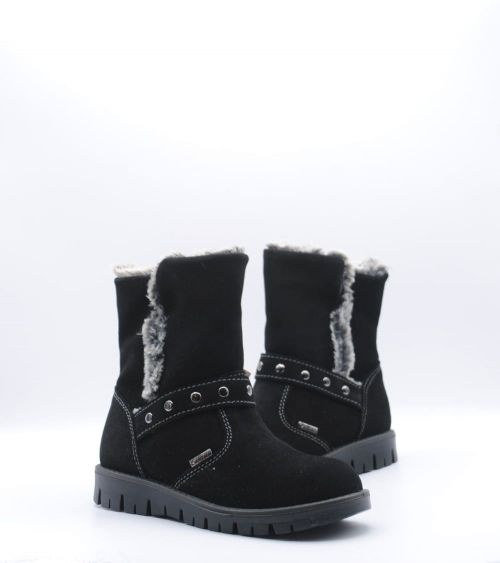 Botas de niña PRIMIGI con membrana GORETEX en piel ante color negro con cierre lateral en la parte interior con cremallera para que sea mas fácil el poner y quitar. Para llevar el pie más calentito estas botas dispones de un forro interior en pelo color gris a conjunto. La suela de goma es antideslizante, perfecto para los días más lluviosos.